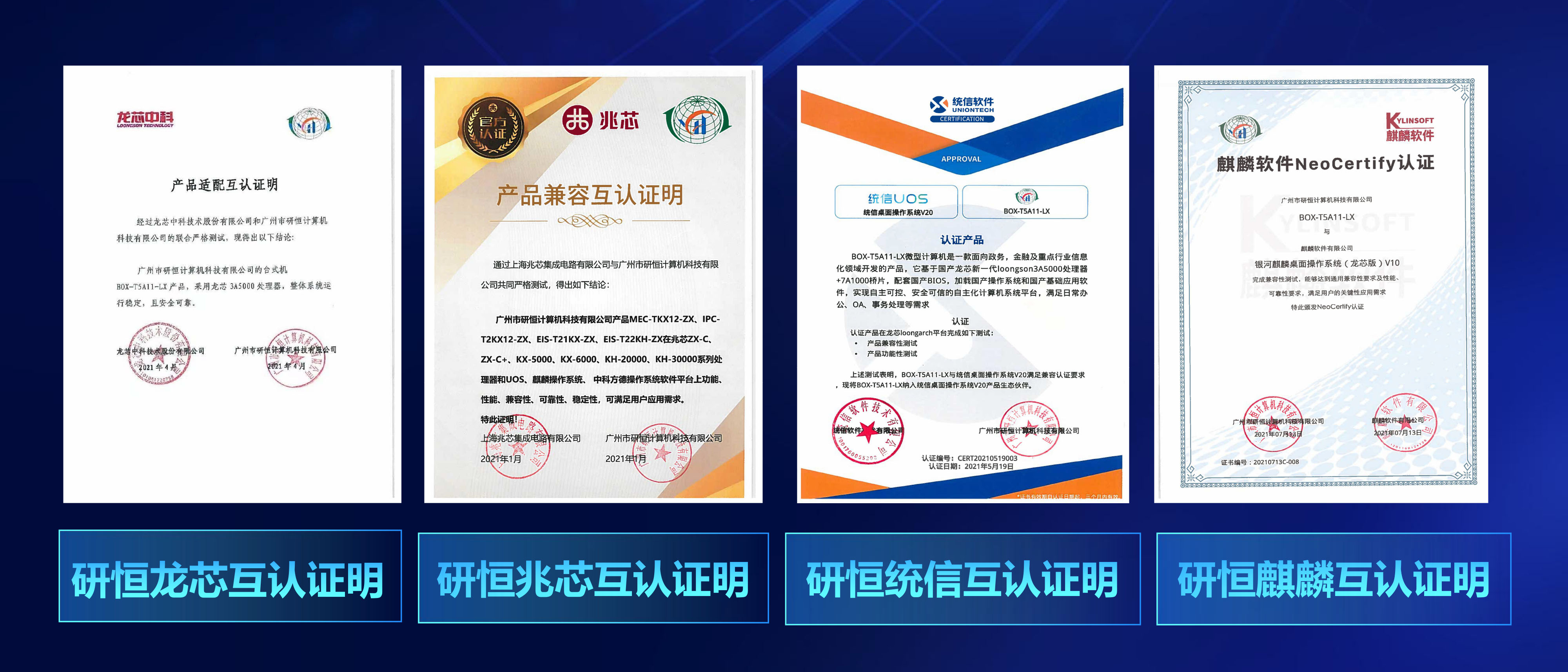 廣州研恒(特控)積極響應國家信息技術應用創新指導方針,從國家全局戰略出發,著眼于行業計算機產品與核心技術創新能力的構建,憑借對各黨政軍領域、企事業單位以及金融、電力、教育、能源等行業的深度了解,以及產品性能卓越、兼容性強等技術優勢,公司自主研發國產化服務器、微型計算機與龍芯、兆芯、飛騰、統信、銀河麒麟等進行了多類別、多層次的產品兼容測試認證工作,實現了高度的硬件國產化代替和國產操作系統適配,并與國內眾多生態鏈廠商建立了長期的合作關系,已形成了完整的安全創新生態鏈。在信息安全建設方面,擁有自身的獨特優勢。