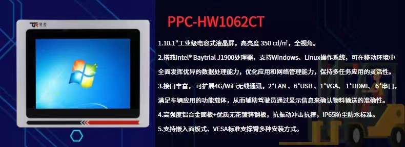 PPC-HW1062CT工業(yè)平板電腦的出現(xiàn),可以讓工作人員在最短的時(shí)間內(nèi)達(dá)到最高的工作效率,同時(shí)也大大減少了工作中的失誤。叉車正從一個(gè)搬運(yùn)工具變成一個(gè)智能化的作業(yè)終端,具有節(jié)省人力、更安全、更可靠的優(yōu)勢(shì)。