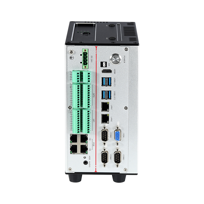 接口豐富 6*LAN,3*COM,4*USB3.0,1*2.5寸硬盤位,1*遠程開關,1*VGA,1*HDMI,4*PWM 光源控制,32*GPIO(16*GPI+16*GPO),1*音頻Line-Out+MIC二合一,1*MSATA,1*MPCIE(USB2.0+PCIE信號),1*MPCIE(USB2.0 信號),1*M.2(KEY-E,2230,USB2.0+PCIE信號,支持WIFI+BT)